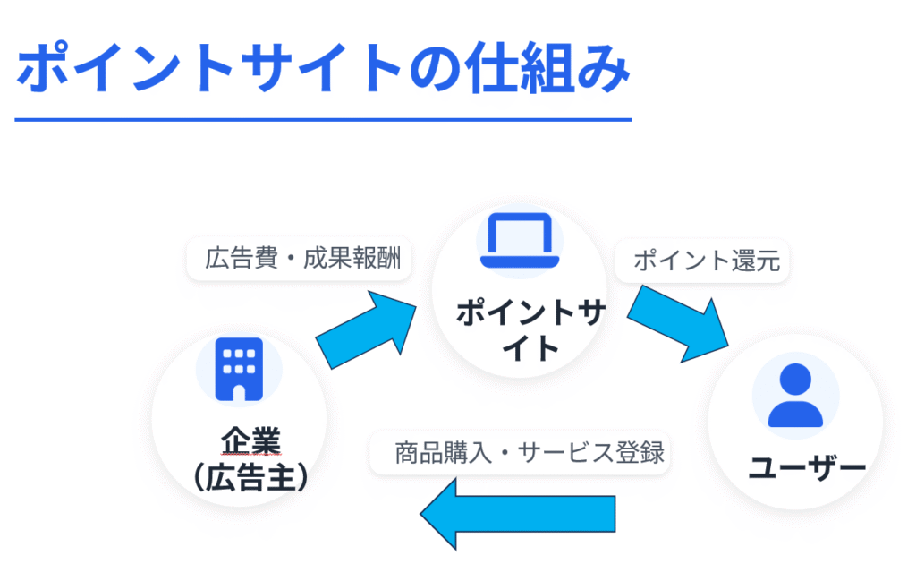 - ポイントサイトは、企業の広告費をユーザーに還元する仕組み